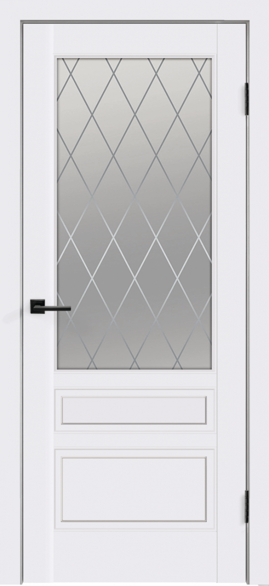 Дверное полотно Эмаль SCANDI 3V цвет Белый стекло РОМБ Мателюкс