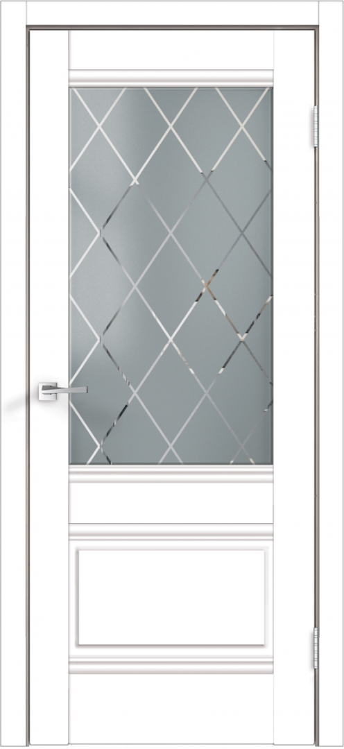 Дверное полотно Экошпон ALTO 2V цвет Белый Эмалит стекло РОМБ светлый